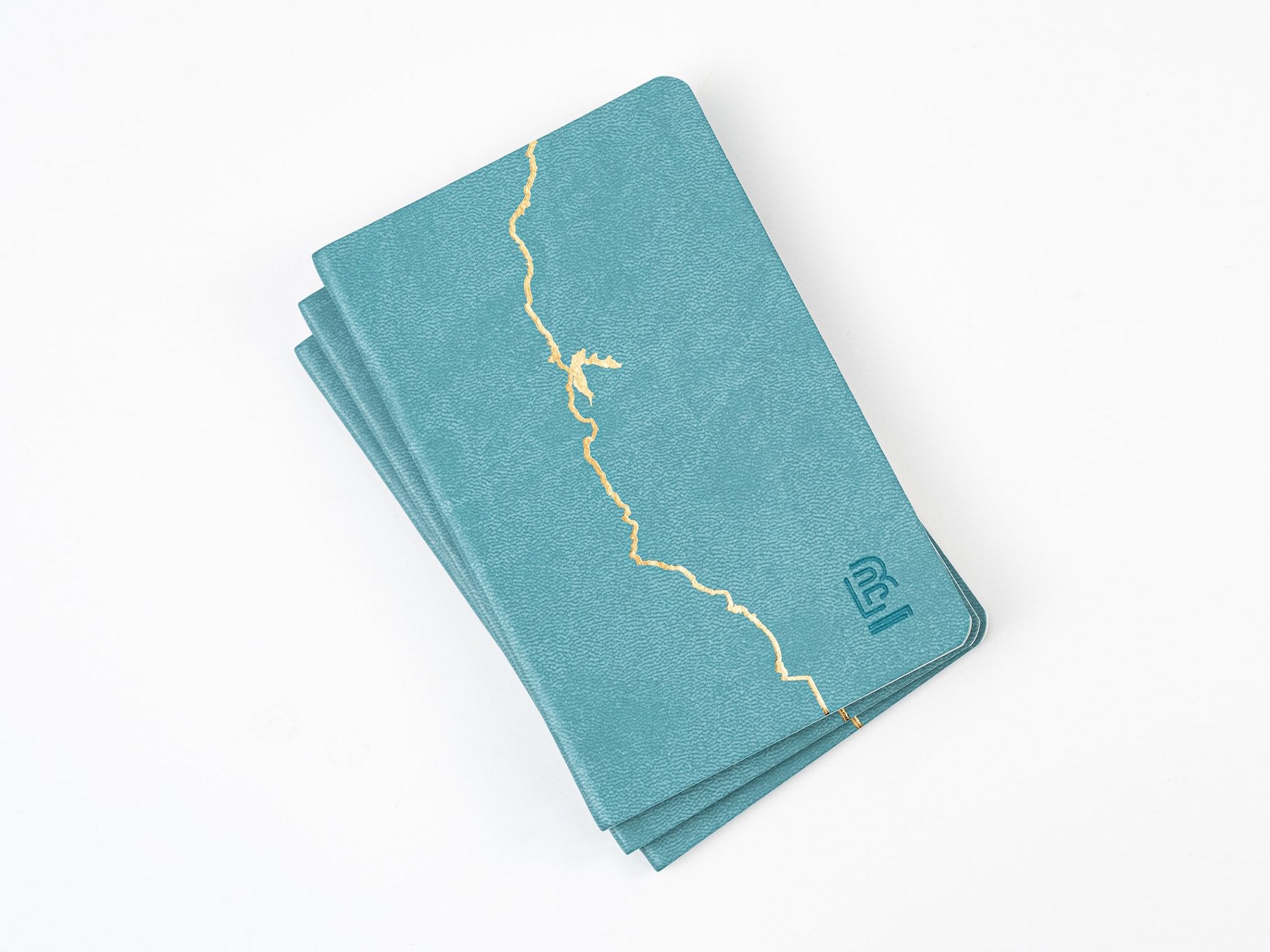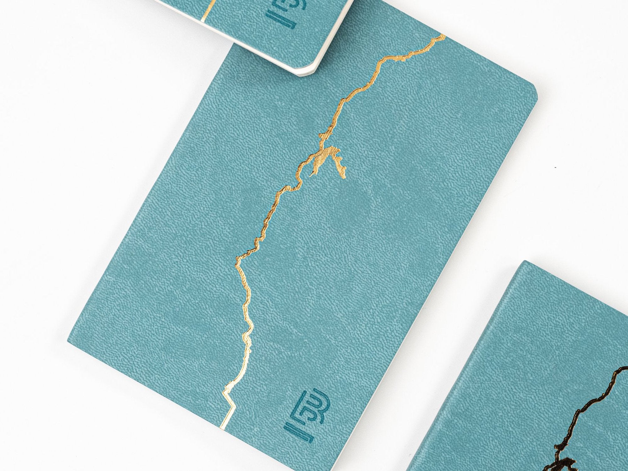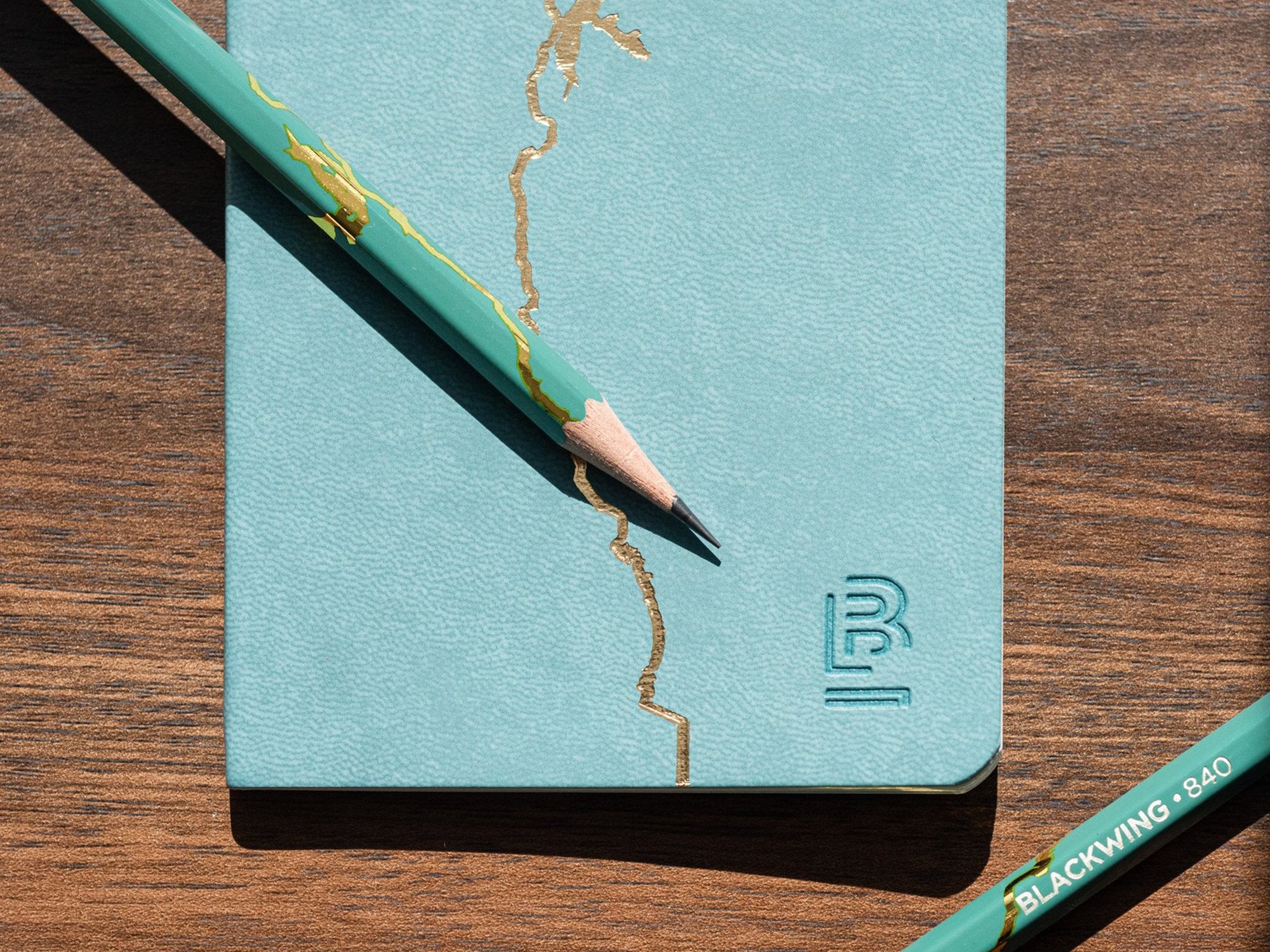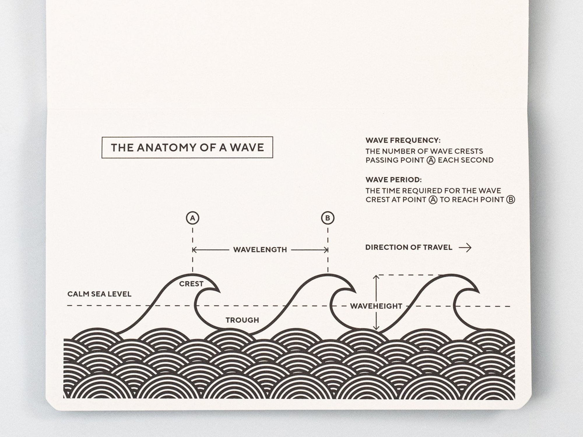 Every Blackwing 840 Clutch notebook features the Golden Coast stamped on its cover in gold foil and an infographic that breaks down the “Anatomy of a Wave” on its inside cover.