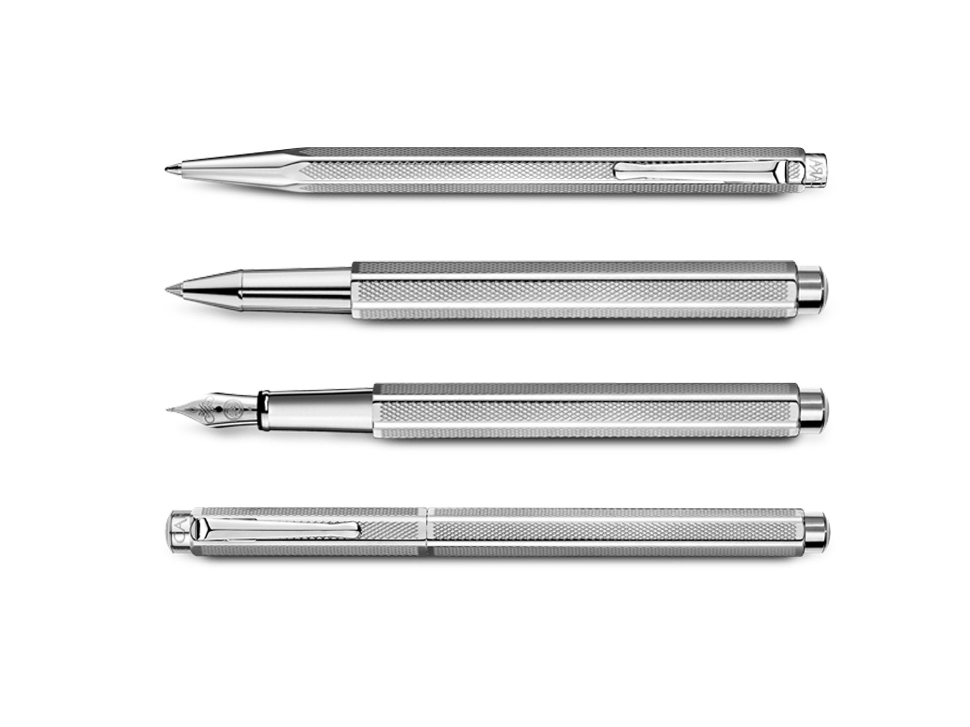 Writing instruments from Caran D'Ache have timeless elegance and charm. True to its name, the Ecridor Retro pays tribute to the first Caran d'Ache mechanical pencils, made from precious metals since 1947. Its guilloche is made of lozenges and is emblematic of vintage models. This elegantly matches its palladium-coated finish. In fountain pen, rollerball, or ballpoint, the Ecridor Retro collection perfectly satisfies your needs for writing comfort.