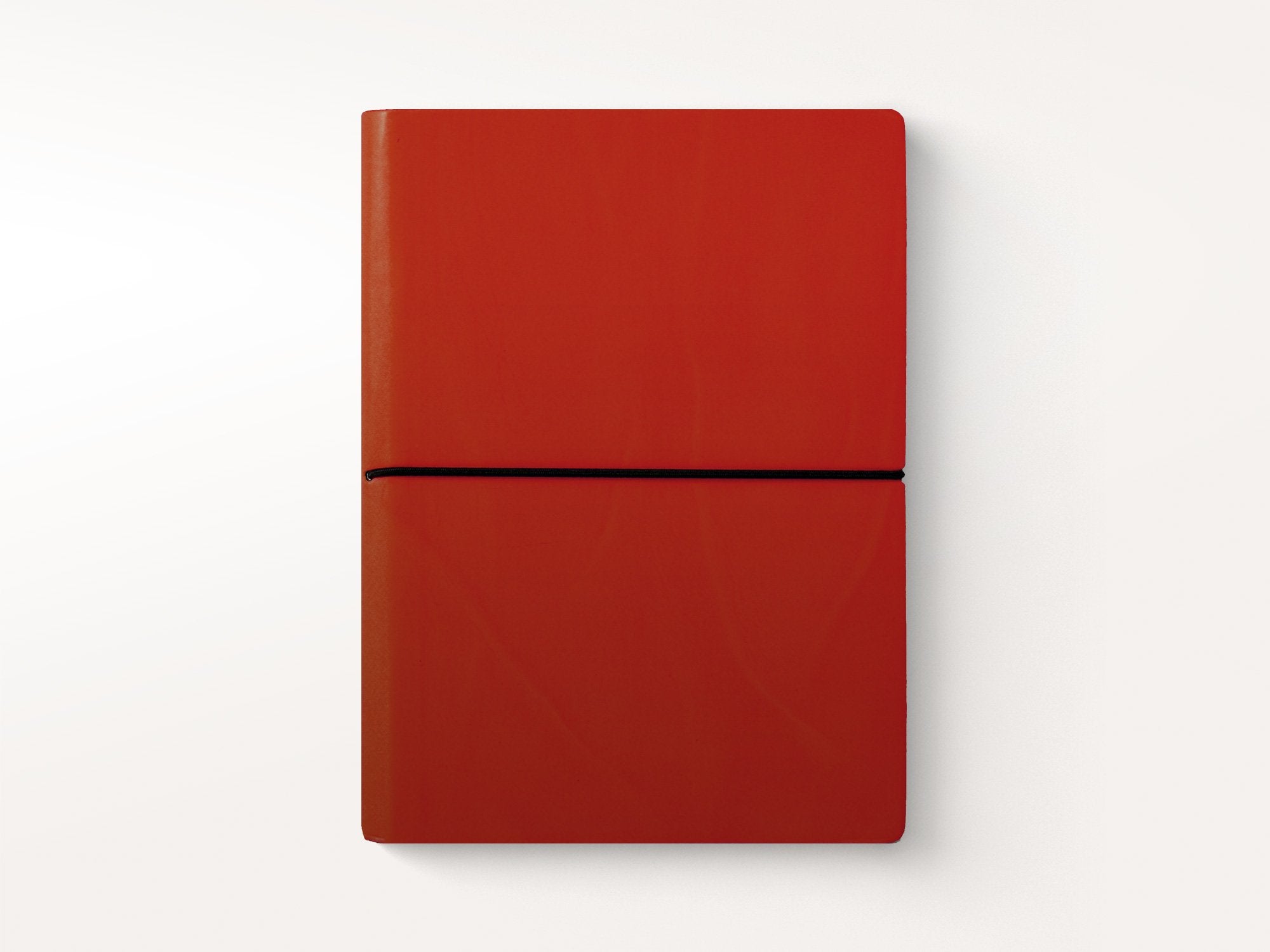 The soft Leather Journal from Ciak embodies modern Italian style, and is hard to find in the U.S.A. The soft recycled leather cover is flexible and soft, accented with black lining and elastic closure. The flexible journal is a pleasure to touch, and the elastic band which holds the journal shut is strong and unobtrusive. A ribbon bookmark is bound into the pages to mark your place.