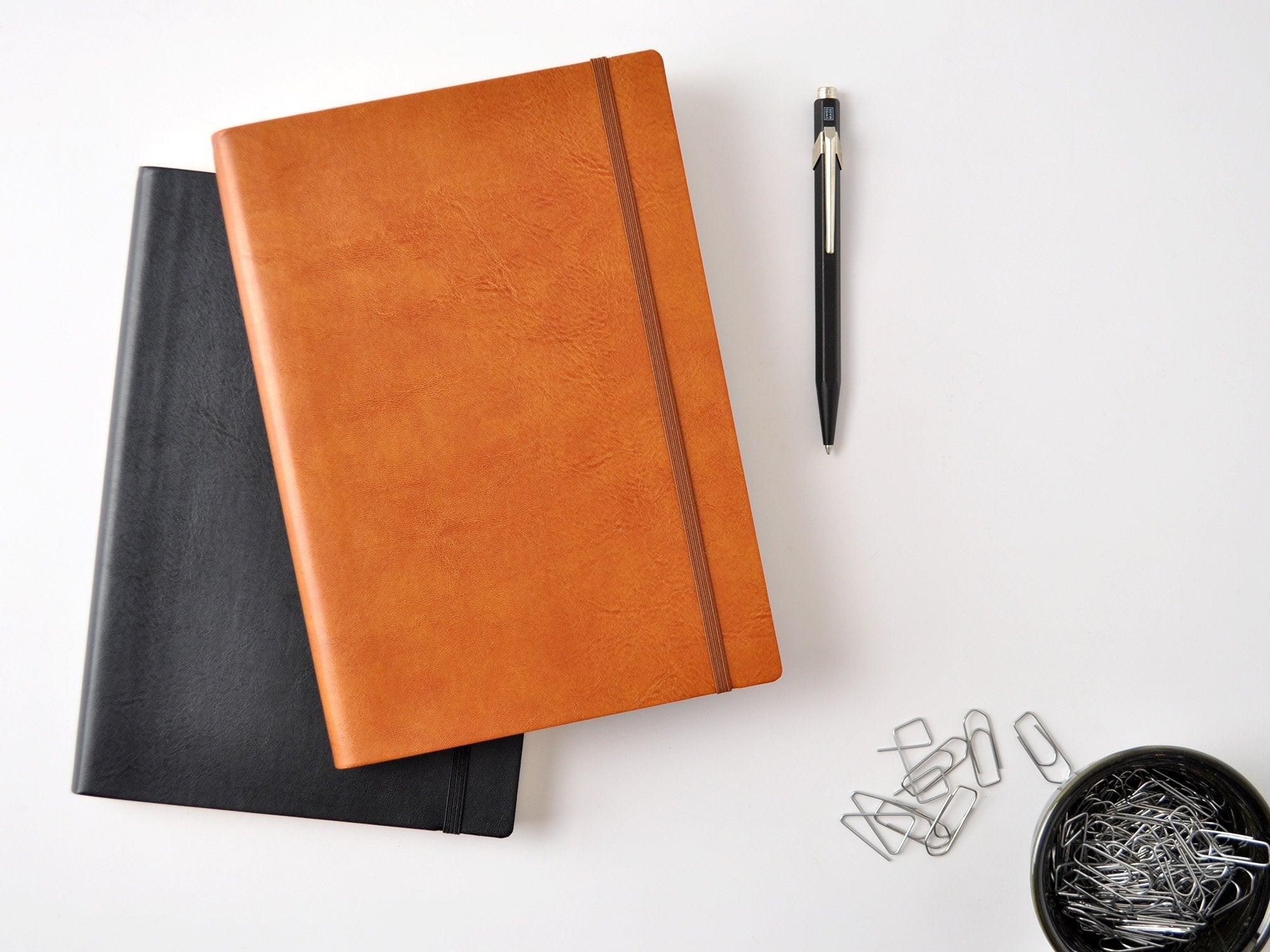 Our Italian Leather notebook is A5 sized, comfortable for note taking, list making, journaling, and writing of all kinds. The soft recycled leather cover is flexible. Bright white ruled pages have a light cotton texture.
