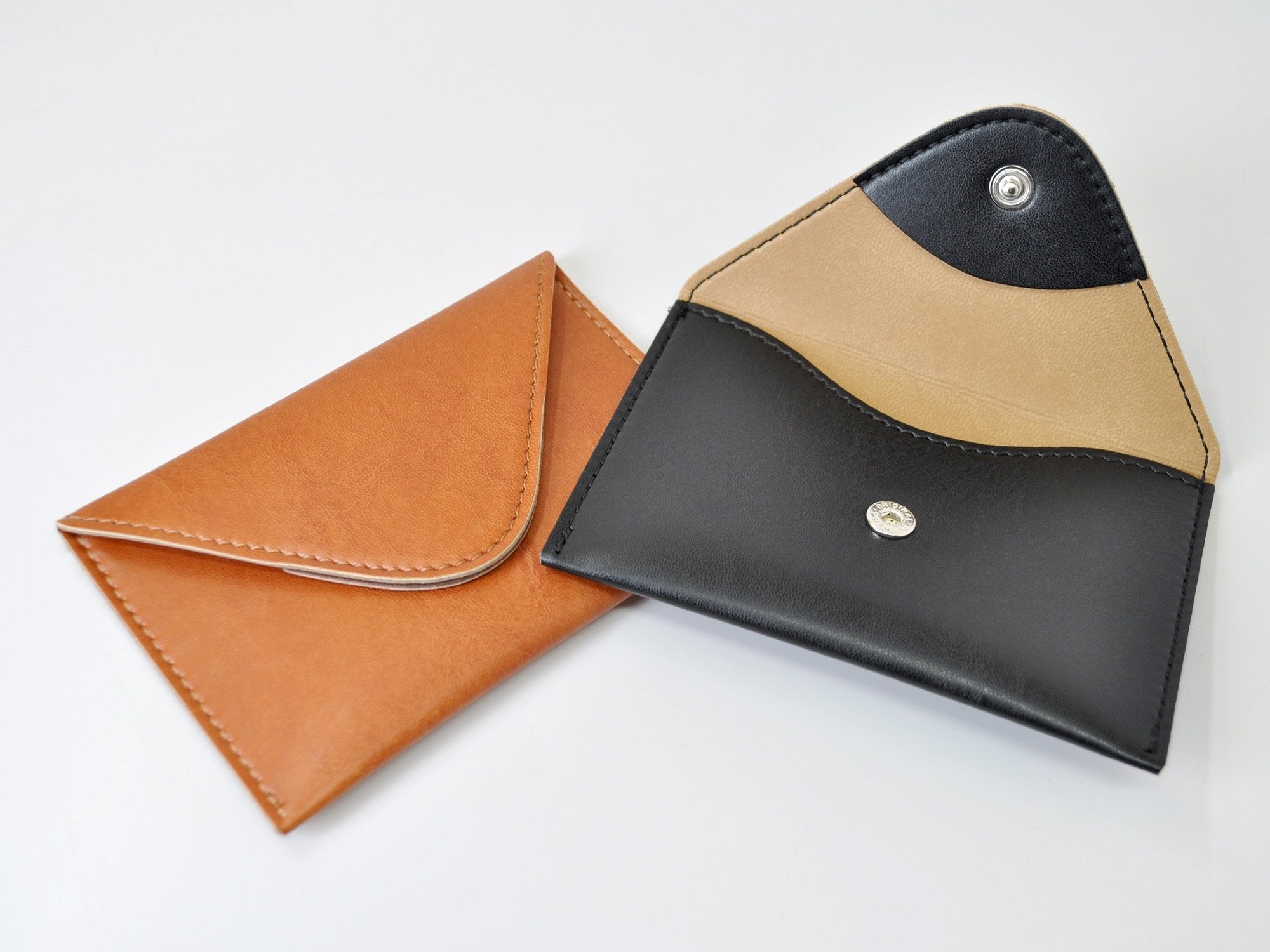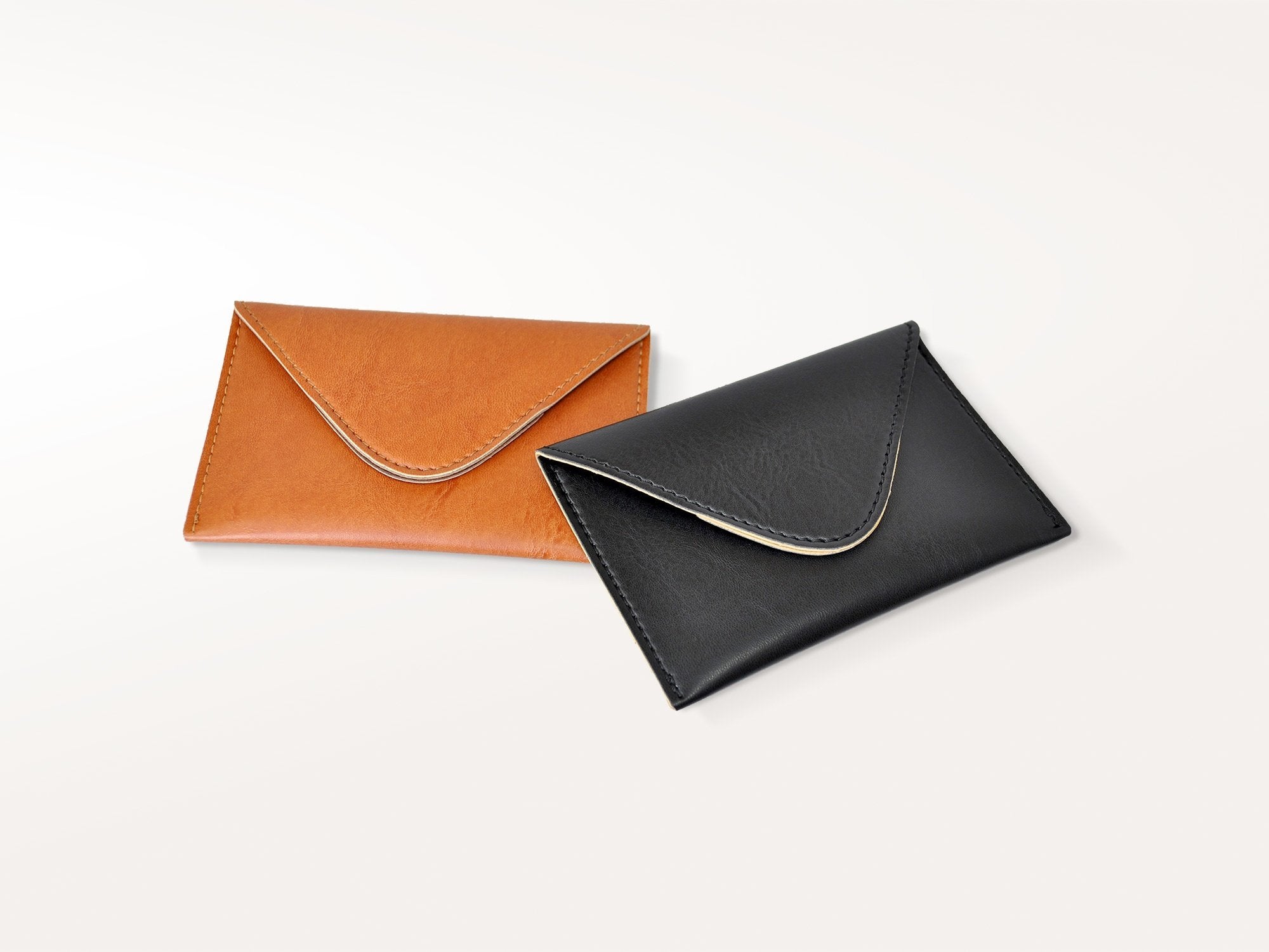 Stash business cards or loose change in our in luxe little pocket card case. Crafted of bonded Italian leather, this sleek and modern card case has a light padded finish. The card holder is lined in contrasting leather.